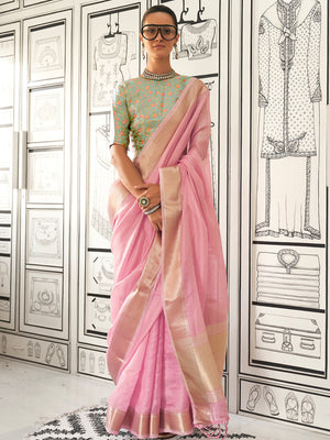 Beautiful sarees with zari Zari or Resham borders are adored by women for their simple yet effortless beauty.